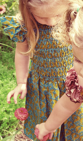 Kylan, age 3, is wearing the Ama dress – coming in Spring/Summer 2012 – with the free flow skirt variation.